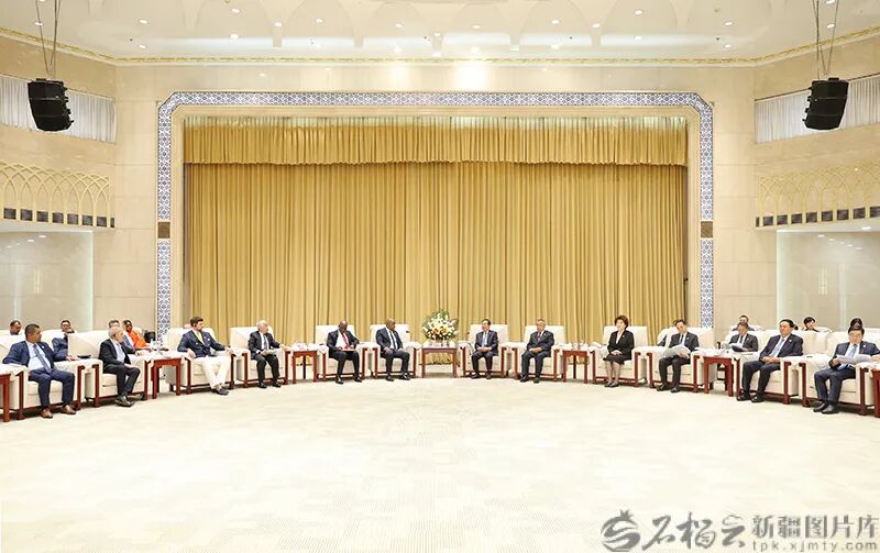 9月13日,自治区党委书记陈小江、自治区主席艾尔肯·吐尼亚孜在乌鲁木齐会见了多米尼克议长伊萨克、利比里亚众议长库恩等出席2025年国际议员友好交流论坛的中外嘉宾。
