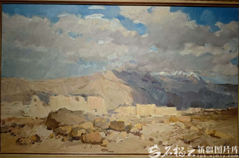 范迪安油画作品《塔什库尔干石头城》。石榴云/新疆日报记者 宋海波摄