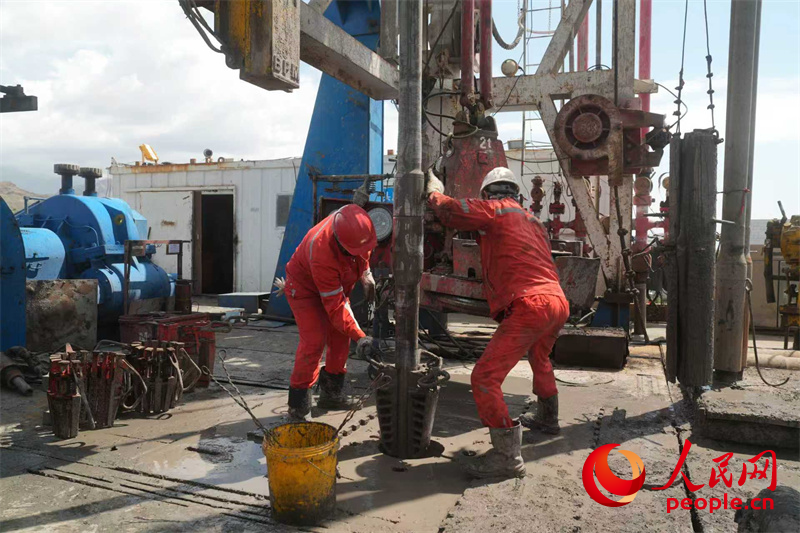 柴窝堡凹陷北缘油气资源潜力评价项目柴探2井施工现场。人民网记者 唐宋摄