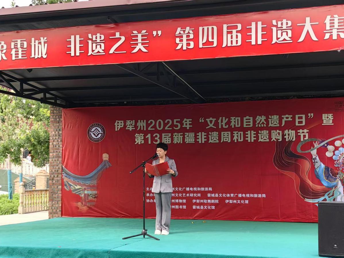 霍城县委常委、宣传部部长胡新峰在致辞中表示,非物质文化遗产是中华优秀传统文化的重要组成部分,是连接民族情感和维系国家统一的重要基础。霍城县地处古丝绸之路北道要冲,文化底蕴深厚,拥有丰富的非物质文化遗产资源。近年来,当地持续加大对非遗项目的保护和传承力度,并取得了积极成效。此次活动的举办,旨在让更多人走近非遗、了解霍城、感受中华传统文化的独特魅力。
