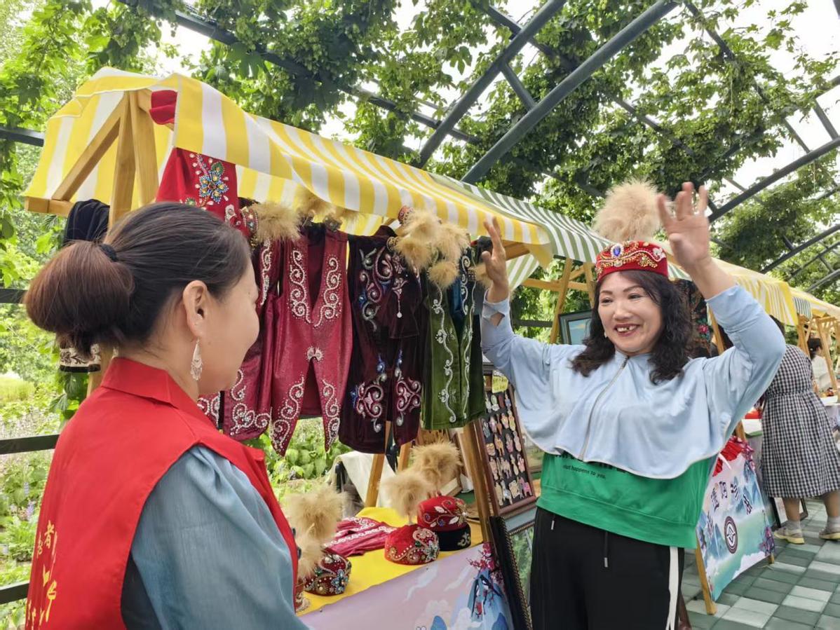开幕式现场设置了多个非遗特色摊位,涵盖特色服饰、传统剪纸、民族刺绣、手工蜂蜜、民族糕点等项目,维吾尔族、哈萨克族、锡伯族等各民族的传统服饰、手工艺品及特色美食一一呈现,种类丰富,目不暇接,吸引了众多游客及当地市民驻足体验,感受多元文化交融之美。