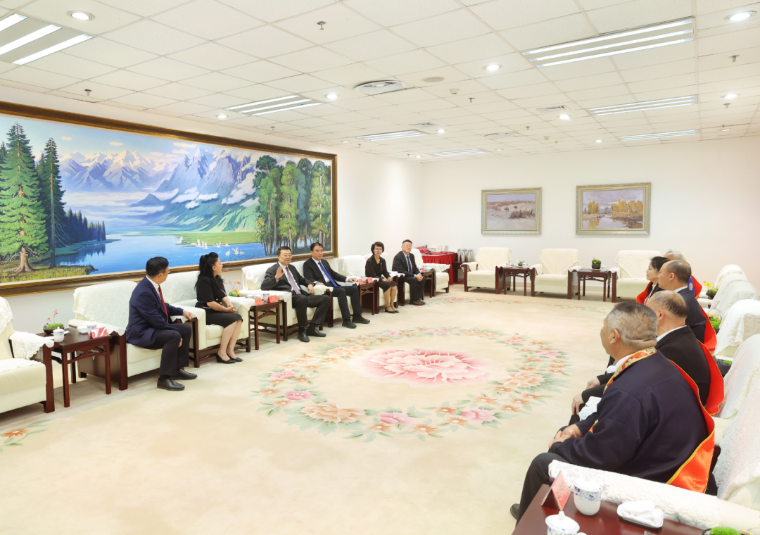 8月22日,乌鲁木齐市民族团结进步表彰大会召开。自治区党委副书记、市委书记张柱出席会议并讲话。图为:会前,张柱会见了历届全国、自治区民族团结进步模范代表。记者陈星宇摄