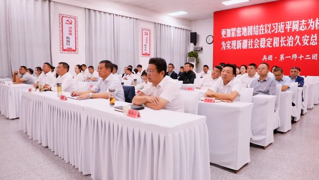 十二团塔南镇机关党员干部收看新疆维吾尔自治区成立70周年庆祝大会直播。朱志升 摄