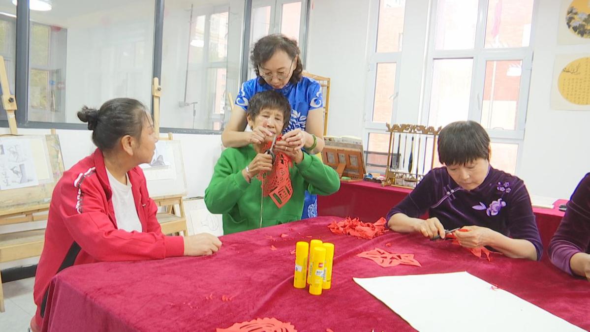 新疆昌吉市建国路街道晶彩城社区居民贺玲说:“今天我们跟老师学了剪纸,剪了一幅剪纸《祝福祖国》,祝我们伟大的祖国繁荣昌盛,祝人民生活越来越好。”